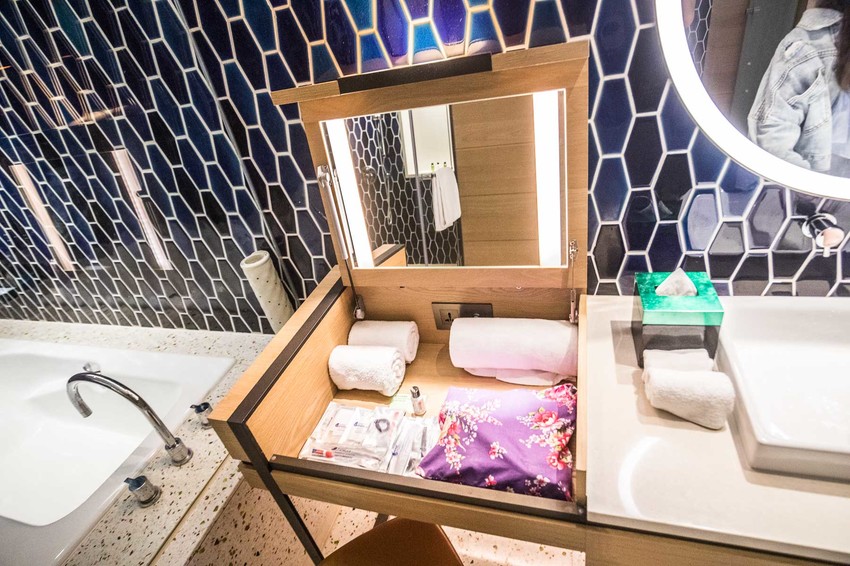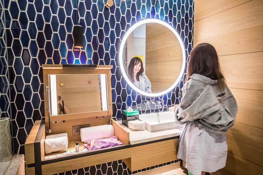 超豪華房的洗手台也是別具風格,感覺就是為女孩們量身打造,鏡子都有獨立的光源方便女孩們化妝梳洗,吹風機也是用超強力的品牌,151頭髮越快吹乾,春宵一刻的時間就更長了(笑)