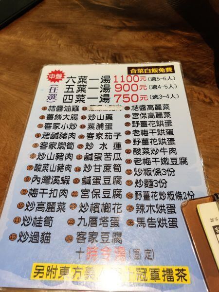 菜單如上,有多人的合菜套餐,也可以自己單點。
