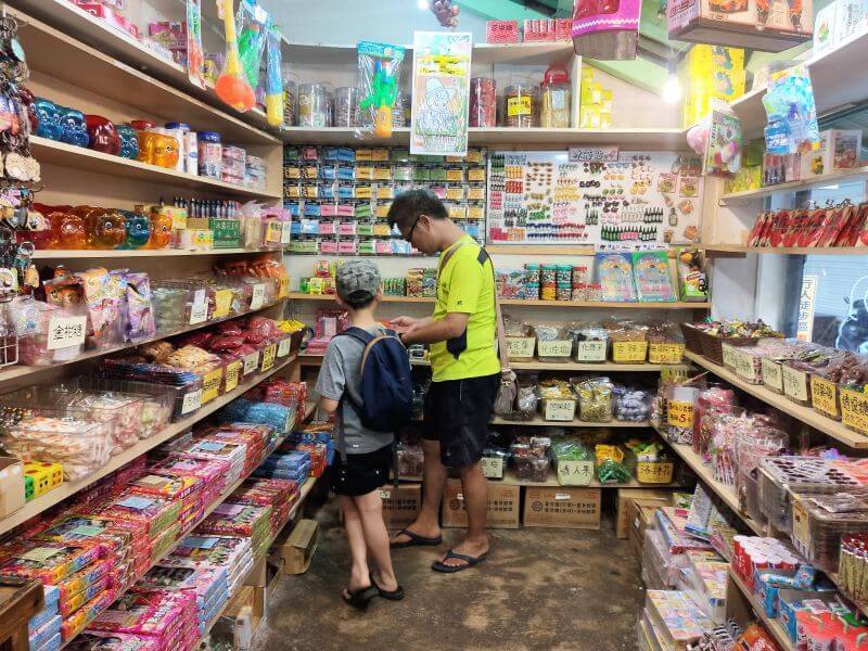 一路穿過空蕩蕩的老街街道,到了內灣戲院,總算這周遭還算是有點人潮,旁邊的小雜貨店賣著古早零食及玩具抽抽樂等,看著這些懷舊的東西都要感嘆自己老了啊。