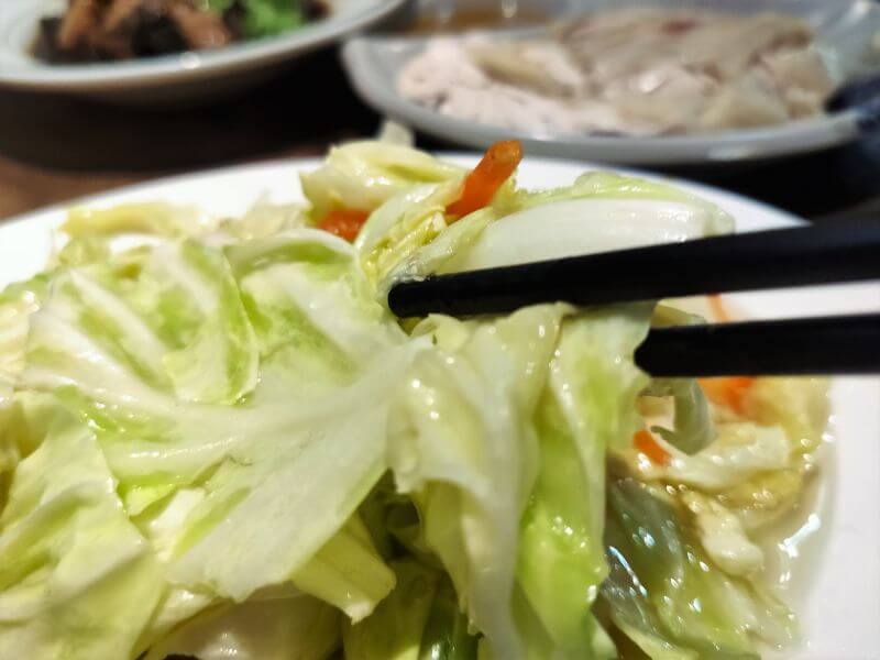必須說,蜜蜜真的覺得味道不一樣了啊~~~怎麼和當年的感受差很多?這次的口味普遍太鹹,也偏油,梅干扣肉的肥肉讓我完全不想碰,菜脯蛋的鹹度我無法……高麗菜味道尚可但偏油,油雞吃起來略略有腥味,幸好清爽桔醬拯救了它!最後上來的時令湯品是用美耐容器裝過來的少許幾片筍湯(眼神死),我已經連拍都懶了XD。