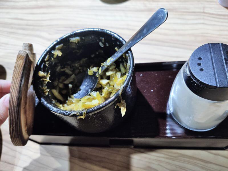 桌上有酸菜和胡椒可以依口味喜好自行加入,酸菜辣度明顯,請謹慎服用。
