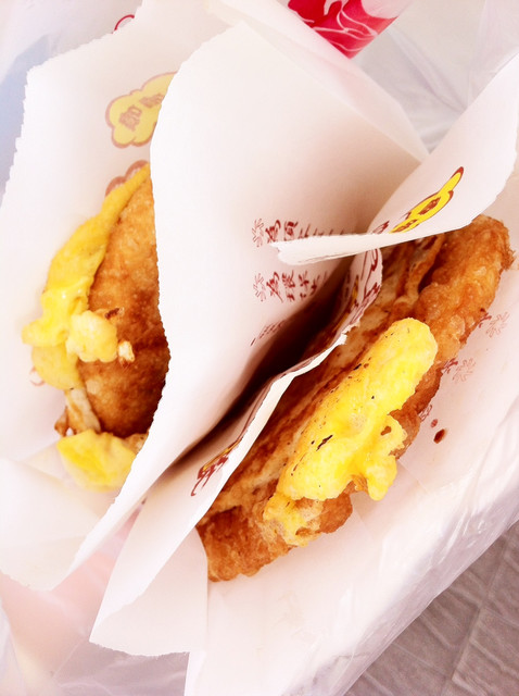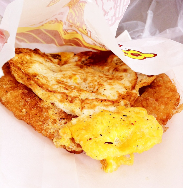 只記得小學時常趁著打掃校外走道時,順便偷偷地和在校旁擺攤的伯伯買個蔥油餅加蛋當點心吃,