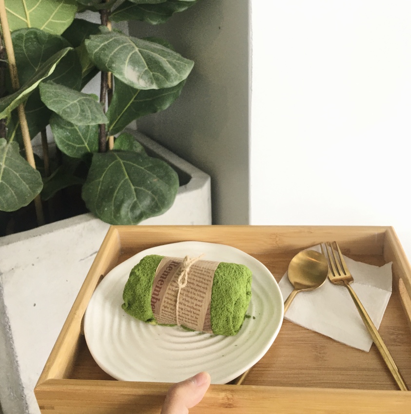 使用千層餅皮包覆著奶油,外層抹茶濃度適中還不錯,不過裡面的奶油蠻膩的個人不是很愛...