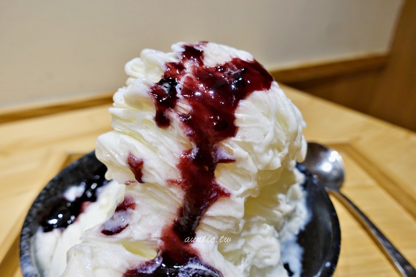 朋友點的雪花冰,個人是比較不愛雪花冰啦,吃了幾口試試口味,桑椹果醬比較甜一點,雪花冰單吃不會太甜,不過有點單調,吃到最後有點膩。