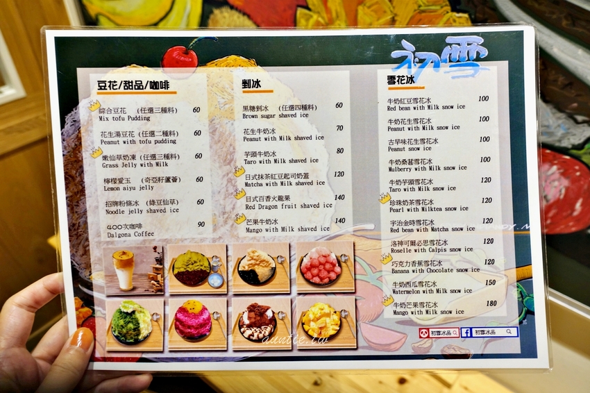 士林的「初雪冰品」在口袋名單一陣子了,不過因為離夜市比較遠一點,比較靠近士林站,所以一直沒走過去試試,這次特地晚上跑去吃冰,味道跟價格還不錯耶,有些刨冰造型真的很吸睛,而且店裡環境很乾淨又有冷氣,這篇來分享一下吃冰心得!