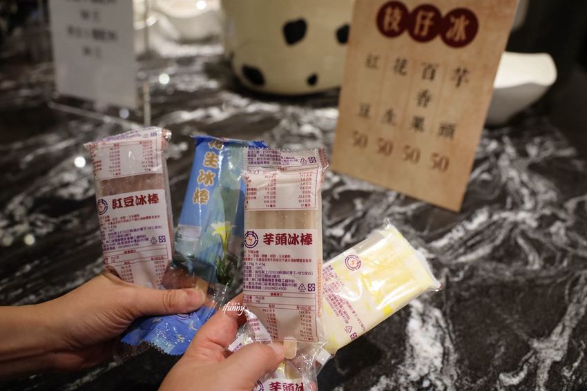 小時候最愛的枝仔冰,有紅豆、花生、芋頭及百香果。
