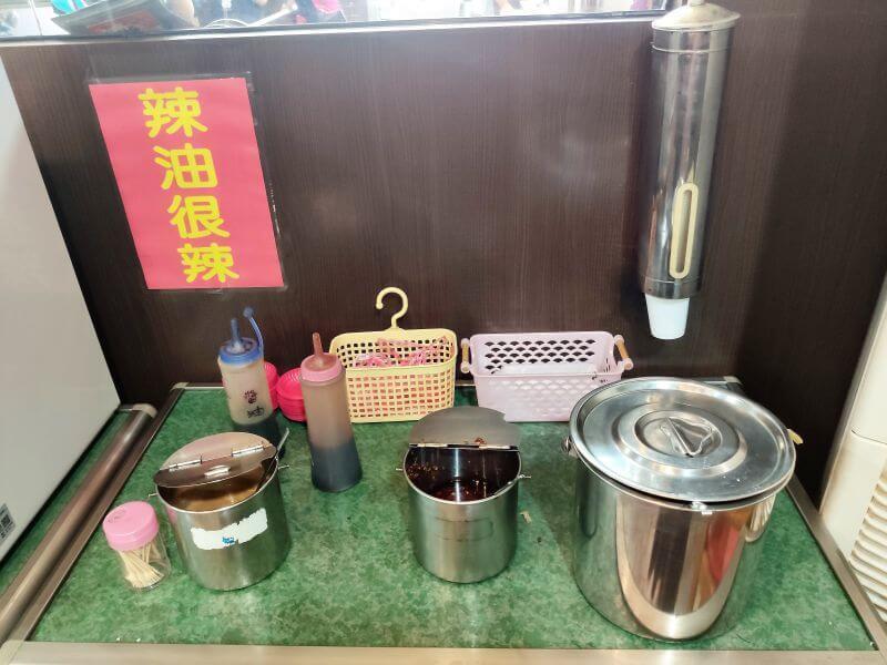 一旁的醬料區及碗筷也是自助,需要辣油酸菜等自己來。