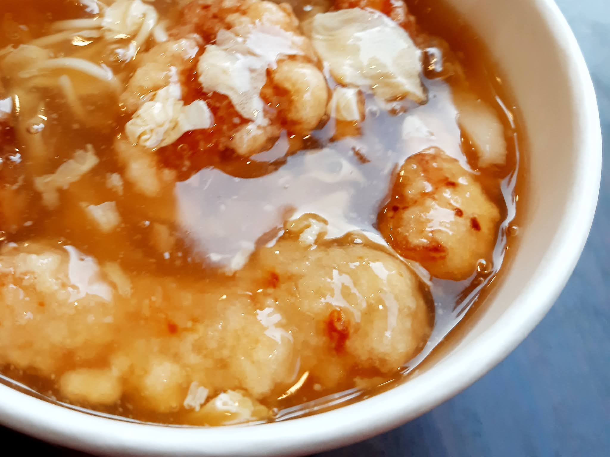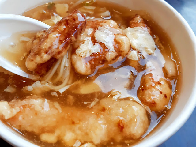 要來介紹這家店我愛的品項𩵚魠魚羹,我覺得這才是招牌無誤啊,外皮裹的粉漿炸到酥脆,就算泡到羹湯中還是很有口感,魚肉新鮮又大塊,麵也是煮得剛剛好不軟爛,其實我不愛油麵(原因是很多都是用粗油麵然後又容易煮爛),但這家的麵很可以,細麵有口感不爛,值得推薦。