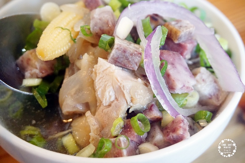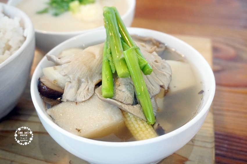好菇竹筍豬軟骨燉湯,豬軟骨、杏鮑菇、秀珍菇、香菇、玉米筍等多種配料而成,湯頭清甜,料也很豐盛,豬軟骨燉的也真的很嫩。