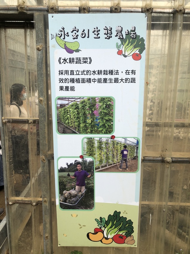 原本園區裡擁有魚菜共生之溫室,因一些問題老闆於今年底將改為水耕蔬菜,所以目前溫室是並未開放的,預計年底開放觀眾觀賞,而圖中則為老闆自豪的專利植物生長器具,老闆也堅持給客人吃最健康的食物,咖啡廳裡的餐點能用自己農場裡獲得的(蔬菜、蜂蜜等)食物都盡量使用。