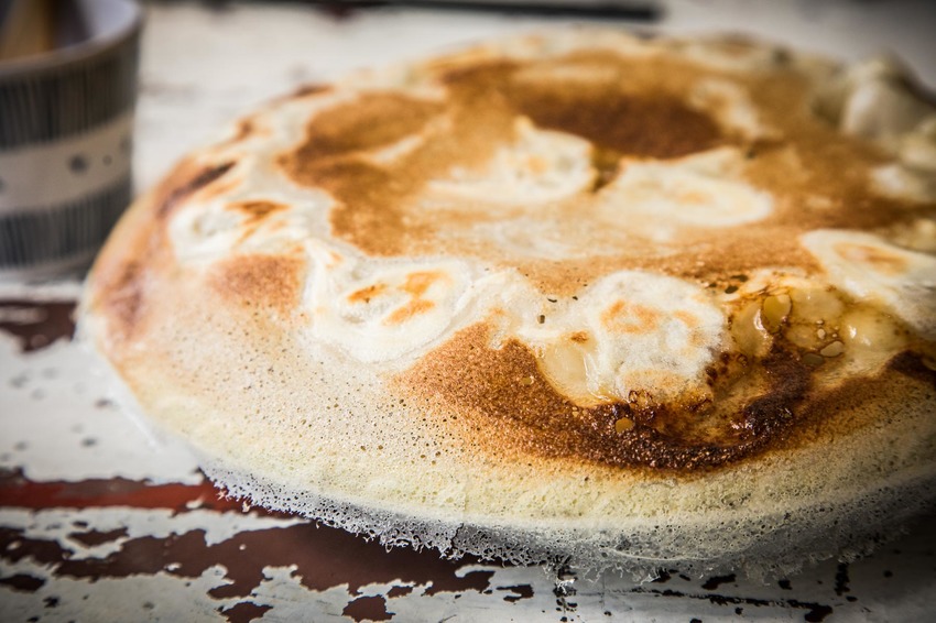 冰花圓盤煎餃都是現點現做,人多可能要等上一段時間,無妨,邊吃豆花邊等也OK,一上桌幾乎大家一致拿出手機拍照,圓圓像個飛碟的冰花圓盤煎餃真的吸睛