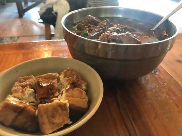 老皮牛肉麵的特色是內用豆花、豆漿無限取用