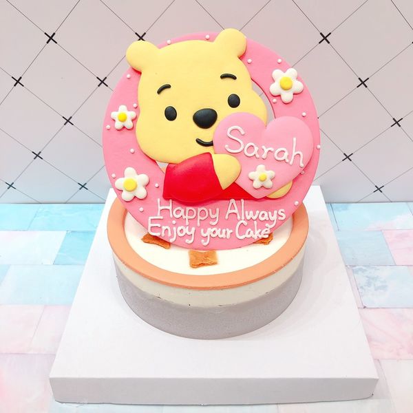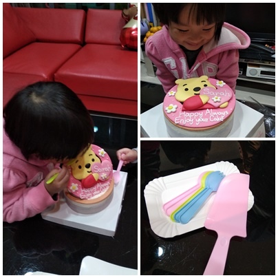 開箱蛋糕時,小孩馬上說哇維尼熊耶~~開心到不行