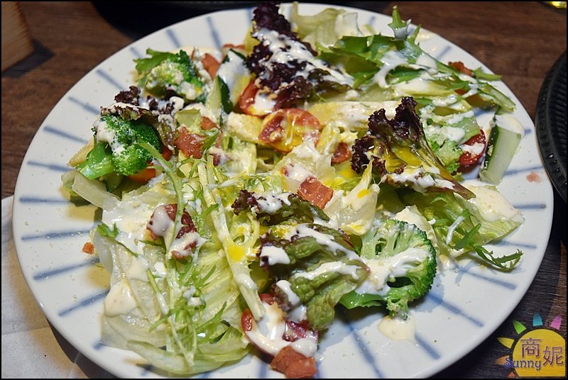凱薩沙拉原本風味就不錯,再加上月見生雞蛋攪拌,多了蛋黃香氣整個蠻清爽的,大口吃肉之餘,來點生菜沙拉平衡一下剛剛好。
