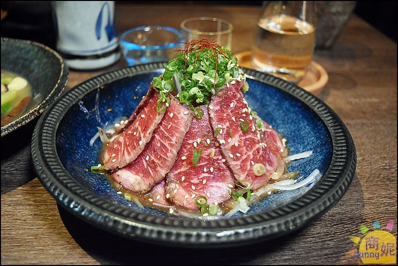 生牛肉包捲洋蔥,搭配和風胡麻醬的滋味,清爽又甘甜好好吃。