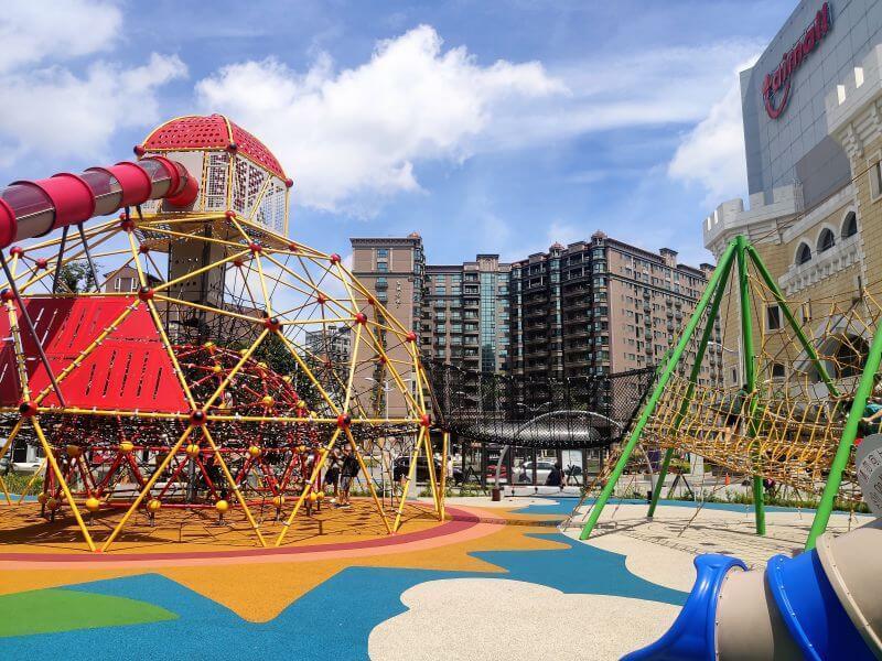 呼呼,這個期待很久的新 台茂公園 終於落成開張了!之前看它一直還在建造狀態,最近終於完成啦~最新引進的兒童遊具是這裡的新賣點,也因為就在台茂購物商場旁,結合了shipping和溜小孩的雙重精華功能XD,不管是大人小孩都能獲得心靈滿足啊哈哈——
