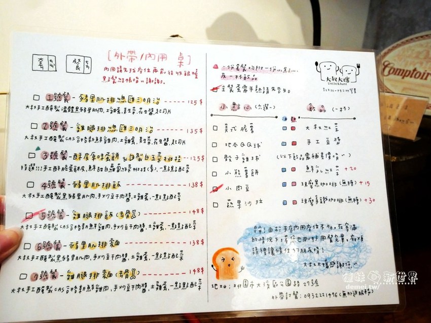 - 1-7號套餐(套餐均附小點/可六選一)以及飲品一杯