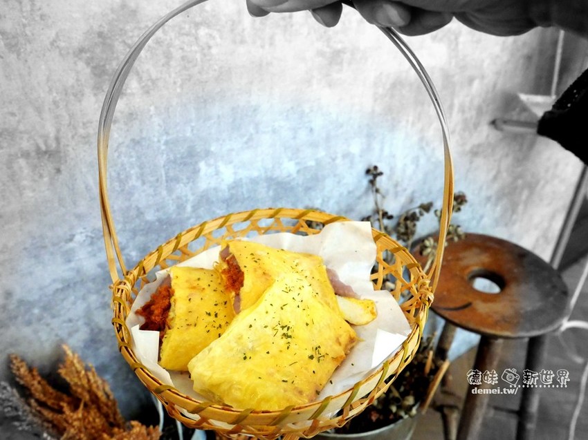 單純喜歡這藤編提籃所以來一張,很有悠閒野餐風。