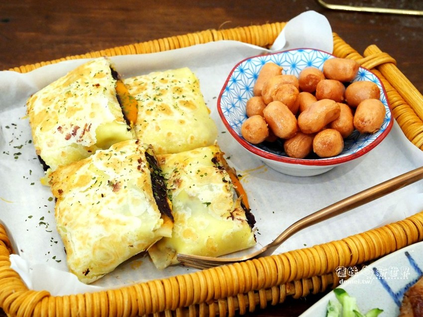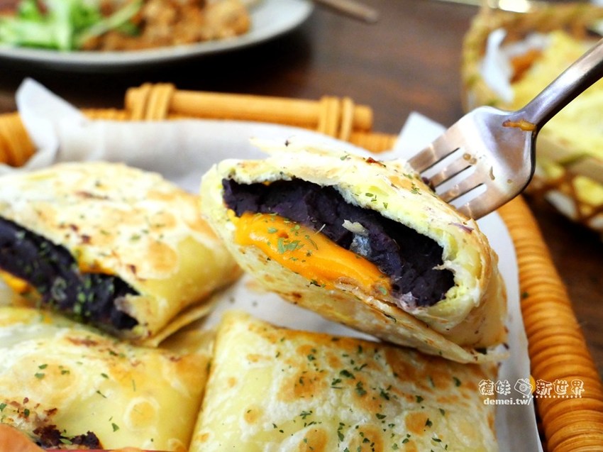 手工脆皮,口感比一般餅皮酥脆多層次,內餡夾著厚厚綿密紫薯泥搭上鹹香起司,
