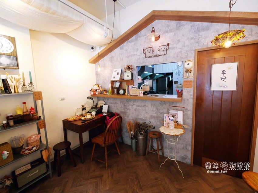 店名是大叔大嬸Uncle&Aunt 早午餐食務所,鵝黃色的門面暖光搭上吐司造型招牌帶點俏皮,