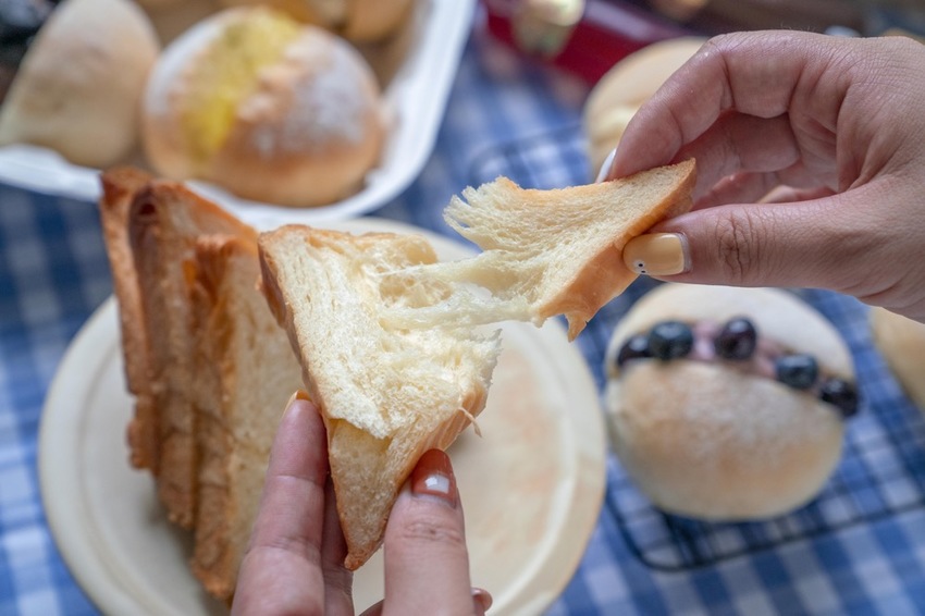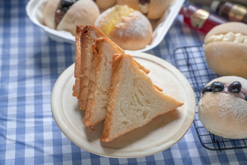 金字塔奶香吐司有別於一般吐司,口感更偏向丹麥麵包一些。內裏比一般吐司更加濕潤香甜,外皮口感也更扎實。