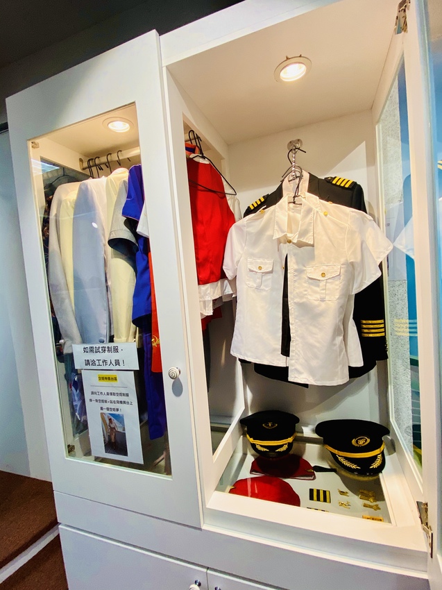 甜空姐櫥窗備用有多國空姐丶機長丶飛行員制服,還有兒童版小制服可體驗,以及法式空姐盤髮教學(建議可以自行帶包包頭髮夾更快速上手),由於甜空姐是新開幕且堅持不重複使用直接送洗,每套服裝和配件都很新穎,換裝時心情既期待又愉悅!