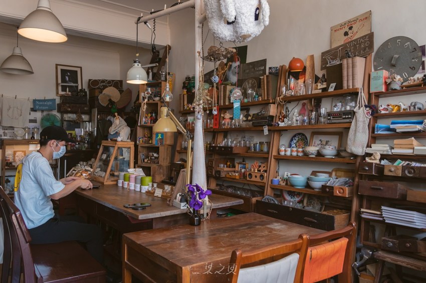 待好友會合一起往二樓去,沒特別在造訪前查找網路資訊的我,立刻就被滿山滿谷的老物件和懷舊小物給吸引去了眼光,入門前一邊配合防疫措施,手忙腳亂的戴起口罩、噴灑酒精,一邊卻忍不住左顧右盼,像進了什麼藏寶窟。
