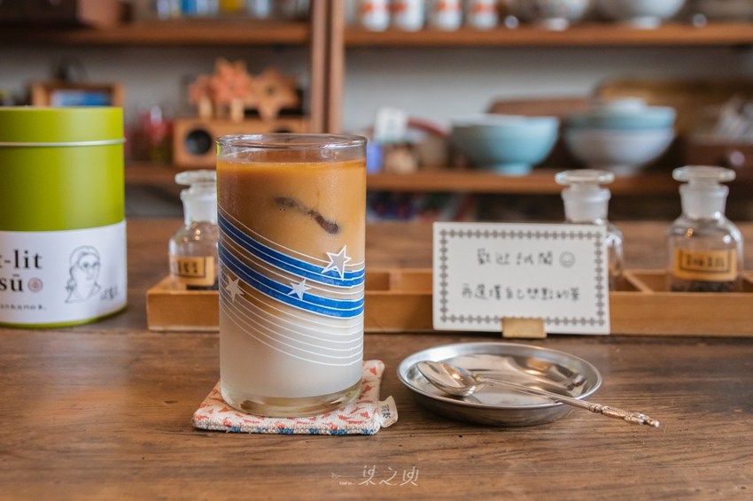 咖啡牛奶用著充滿復古感、像是從前冰菓室會用的玻璃杯,上頭的星星圖騰在現在看來更加童趣可愛;當天使用的咖啡豆忘記問主人了,不過咖啡牛奶本身融合之後,乳香及咖啡香的平衡感很不錯,喝來清爽且香氣不因製作成冷飲而有所缺失。