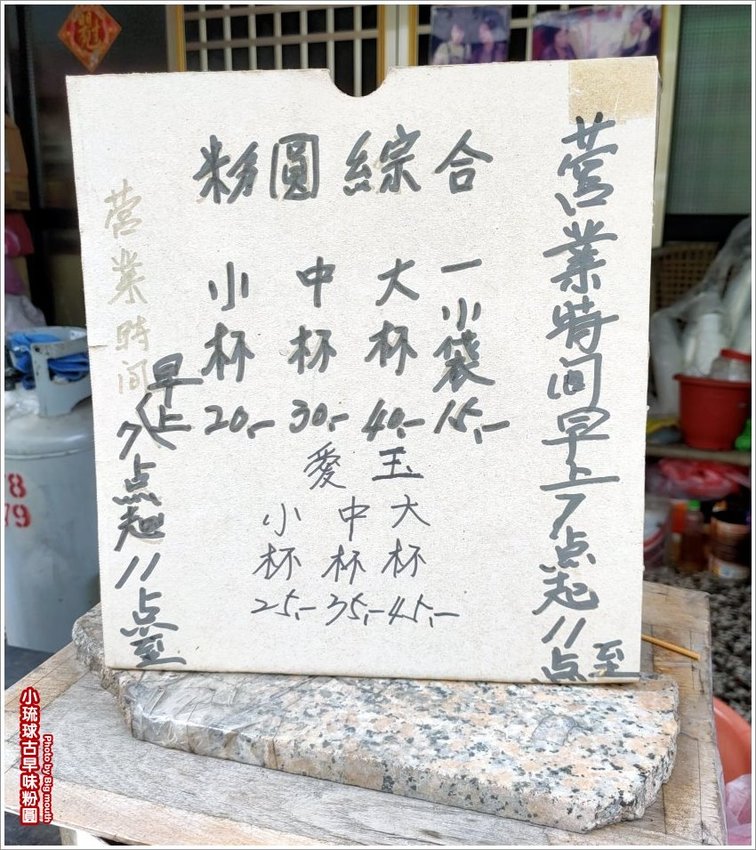 ▼這裡沒有招牌,販售的品項也很單純,就簡單的寫在紙板上!大致上分為綜合粉圓、愛玉兩種,可以選要杯裝還是袋裝,如果粉圓想要加愛玉也沒問題,再加個五元即可!