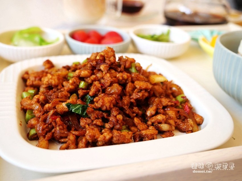 使用溫體豬絞肉、蒜頭、辣椒、洋蔥、九層塔等搭配上自製獨門醬混炒,