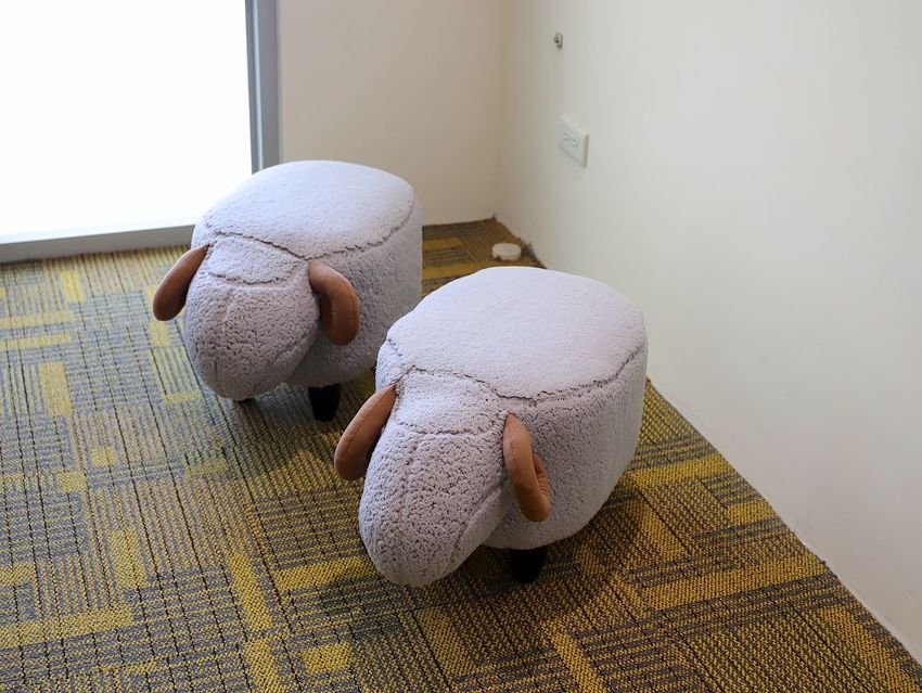 《樹屋文旅》每個樓層,都有專屬的風格設計,電梯等候間的座椅、樓層地毯、動物座椅,各樓都有不同的搭配唷!!!