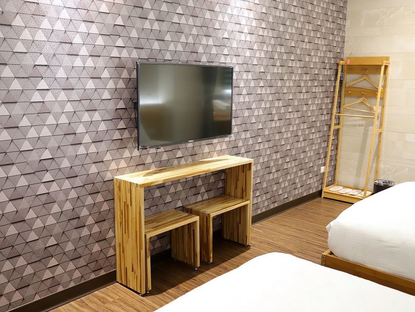 這間雙人房型,還有個獨特的設計,就是電視牆後方還有個小小私密空間,”偽包廂”&個性牆面設計,據說是很多入住網紅拍美照的地方~