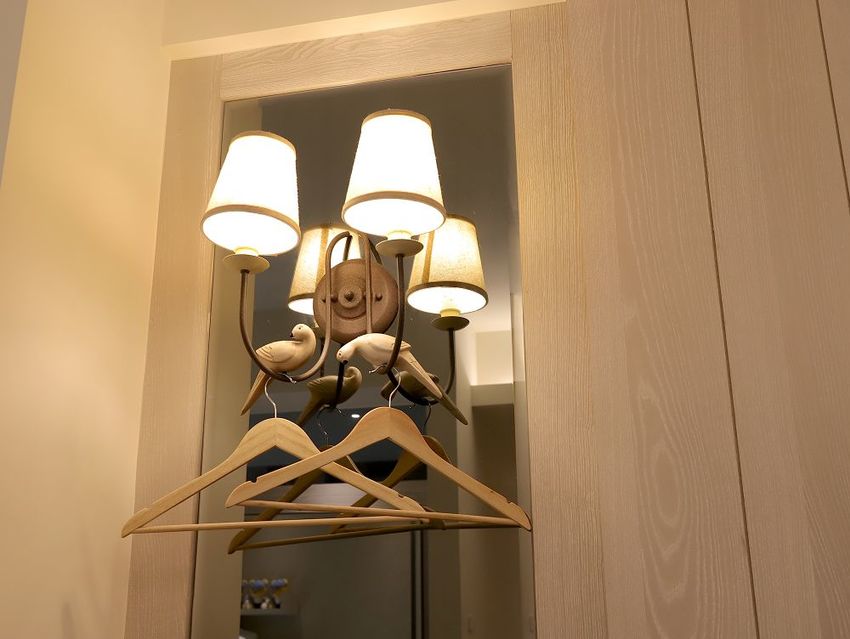仔細一看~ 牆上的造型小燈,是兩隻鳥兒的造型,讓我想到此迎娶房 或許也有雙棲雙宿、永浴愛河之意~^^