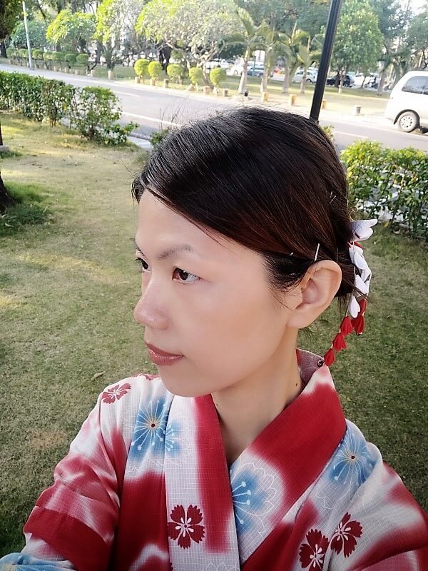 在挑選好浴衣之後,工作人員會幫忙穿上及綁腰帶,搭配好飾品之後,總算是可以出來拍照囉!