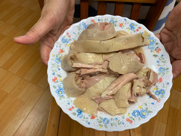 全部包裝拆開後,把雞肉切片,最後擺盤就可以完成這道廚嚐室與黃景龍廚師一起聯手製作的琉璃水晶雞腿。