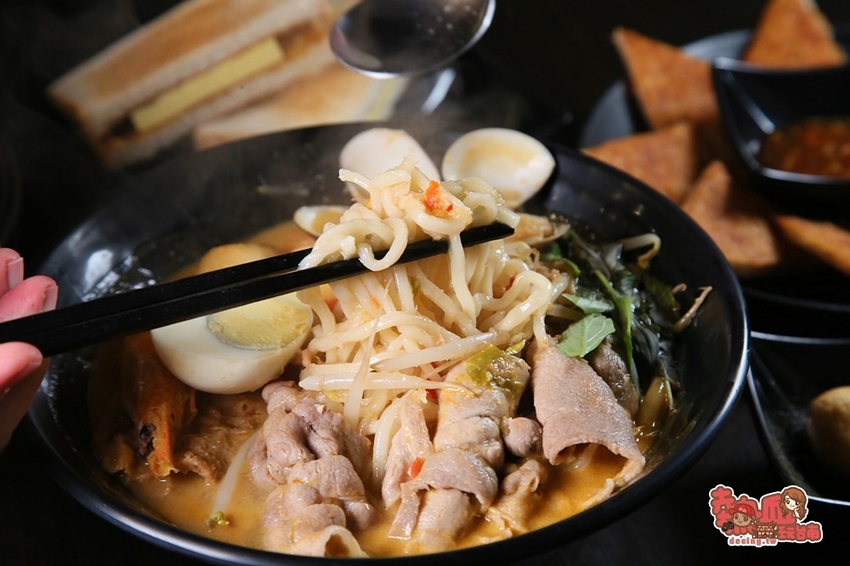 不能出國,就來吃「寶貝老闆新加坡叻沙麵」一解相思吧~位於台南東區東寧路的街道轉角處,店內專賣新加坡叻沙麵,結合不同料理及麵條讓客人選,店內還有主廚私房料理,最近還推出只要是姓「葉」的朋友持身分證核對,來安平店或是東寧店內消費滿200元就送超罪惡的恐龍美祿;如果不想內用目前也有跟FOODPANDA熊貓外送合作哦~在炎炎夏日裡,來上一碗熱帶國家專屬的濃厚叻沙麵,品味那渾厚的濃郁湯底尬上美味的麵條就是爽~