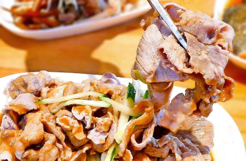 使用椒麻醬拌和豬肉片拌在一起.微辣帶鹹甜滋味,讓人吃的好過癮!