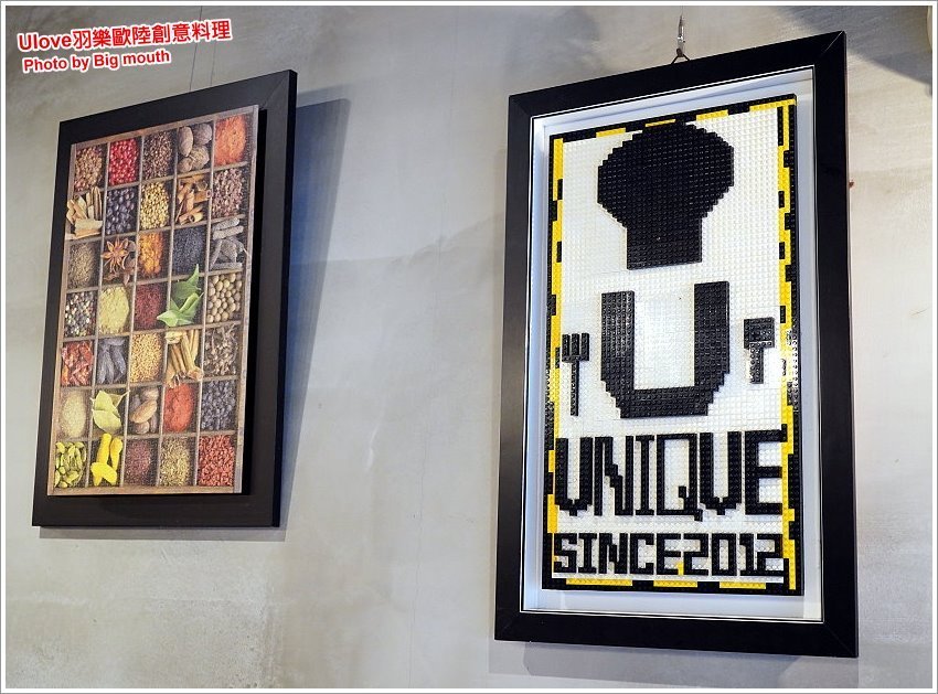▼牆上這幅積木畫是生日時朋友送給老闆的~~上頭寫的是羽樂的前身,也就是2012年所開設的餐廳「Unique Pasta維依義大利創意料理」,採用的正是姊弟倆的名字各取其一,老闆持續保留到現在,也是一個很好的紀念!