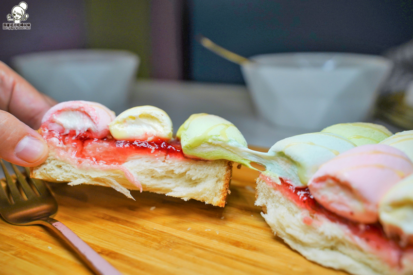 挑選了孩子喜歡的草莓口味,視覺滿分也療癒的草莓棉花糖吐司
