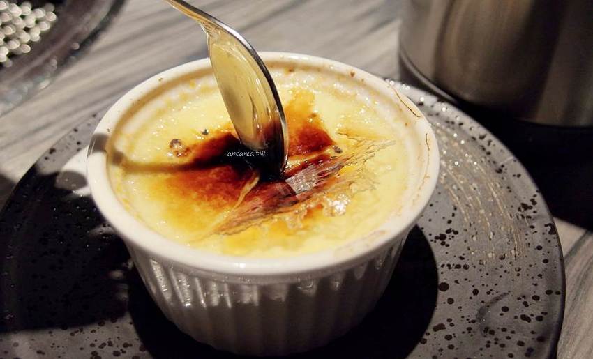 焦糖布丁上面那層薄脆糖衣一敲下,裡面的布丁柔軟滑順蛋香濃醇,微微香甜好吃不膩。