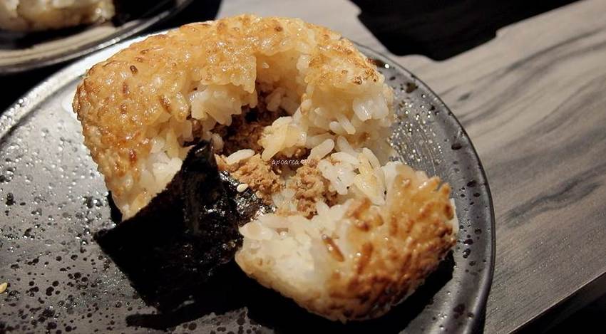 烤飯糰內餡有牛肉及豬肉可選,我們各選了一種。烤得外表金黃焦香,包上小片海苔,酥酥香香還帶點鍋巴香氣,與豬牛肉餡咬下,外酥內軟很討人喜歡,小孩也很愛,都他們吃光的。