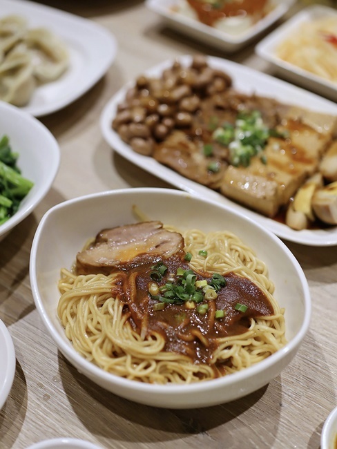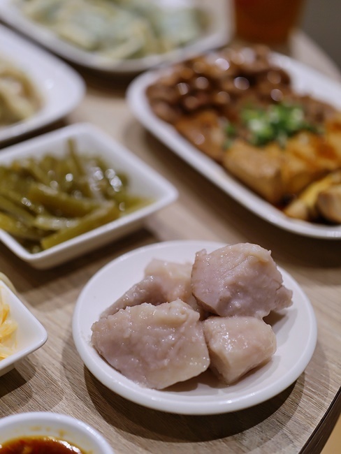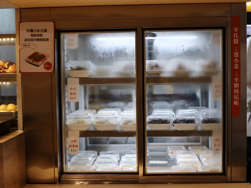 進門後可以先在右手邊看到當天提供的小菜跟滷味,小菜每盤都有用半透明的蓋子蓋上、衛生無虞,有喜歡的拿個托盤就可以挑幾樣愛吃的回座位囉。