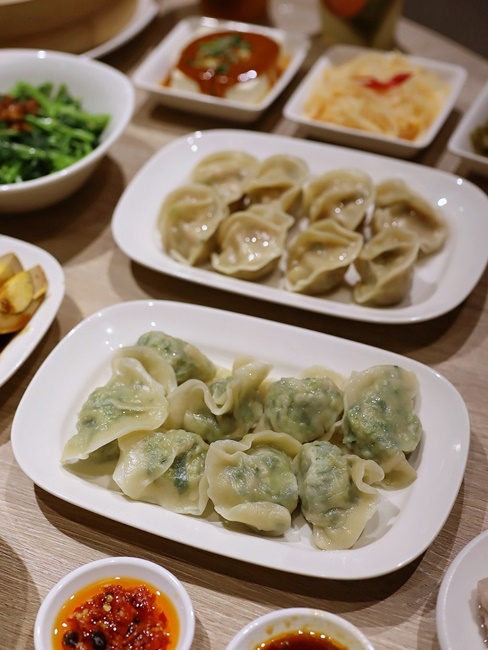 ▫️在還沒來現場用餐之前,有叫過一次外送,當時就被剝皮辣椒水餃圈粉啦!皮Q餡飽滿,個頭不小,肉味新鮮加上甜甜辣辣的剝皮辣椒塊好涮嘴啊,韭菜餡也很優秀的裝滿餃皮,沾點專用的水餃醬油就很讚啦。