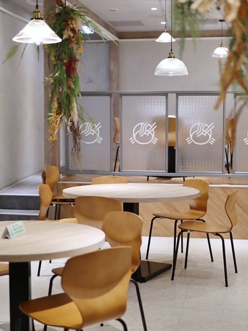 座位以2~4人桌占多數,後方也有可容納較多人的大圓桌喔。