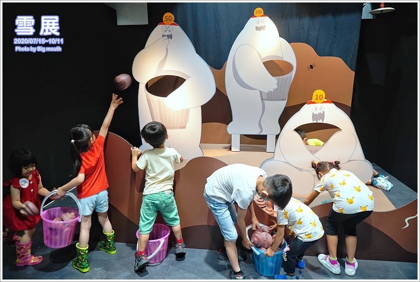 ▼要出來之前還依依不捨跟雪景再合照一張,不過還有另一區親子互動區也非常有趣,趕快來去挑戰吧!不過因為我們是利用等小朋友外套的空檔先跑去互動區玩,然後才進低溫區,所以沒把雪鞋換掉,大家記得雪鞋不能穿入互動區,因為這裡會直接連通到出口唷!