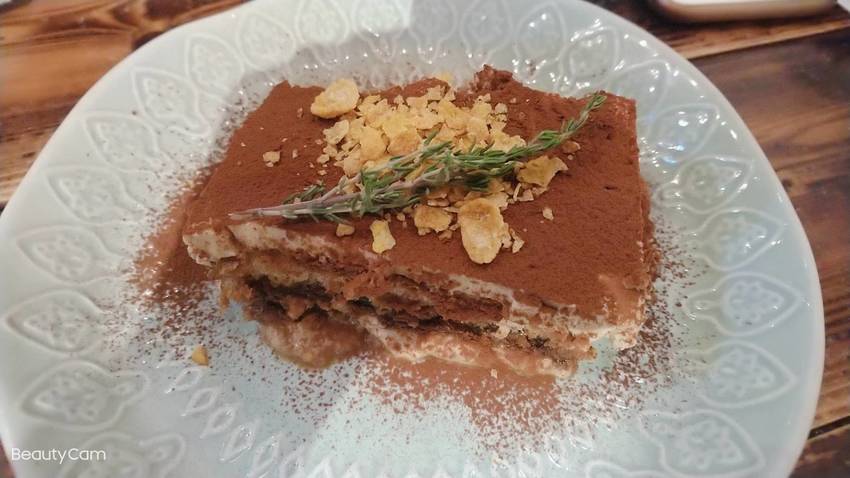 ㄟ....這個提拉米蘇上來時其實更完整,只是剛好在我離開座位拍照時被我那壞閨蜜吃了好幾口,所以形狀變了(這我一定要替老闆說話),它的口感...軟綿又入口即化,上面灑的巧克力粉帶點苦味,巧妙平衡了下面的甜味,這..也太好吃了吧!一口特調、一口甜點,女人啊!就該如此幸福(說的好像平常很不幸福似的)哈 哈