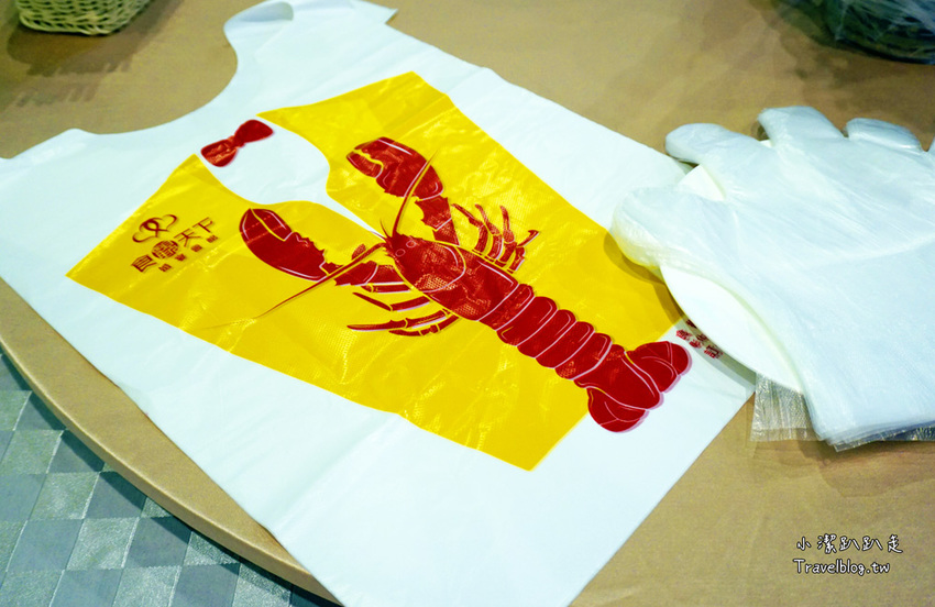 記得先把圍兜兜和透明手套戴上,就不用擔心雙手吃海鮮剝殼弄髒,或被醬汁噴到全身油膩膩。