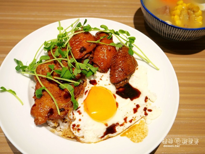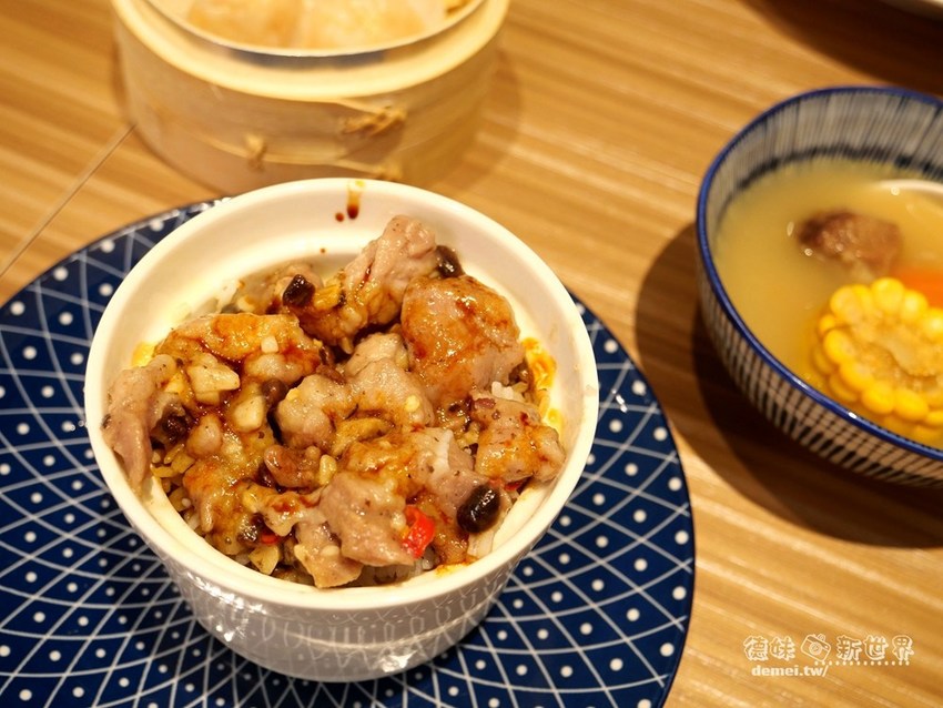 粒粒分明的泰國茉莉香米淋上秘制醬油,上方則是肥瘦均勻的軟嫩小排。