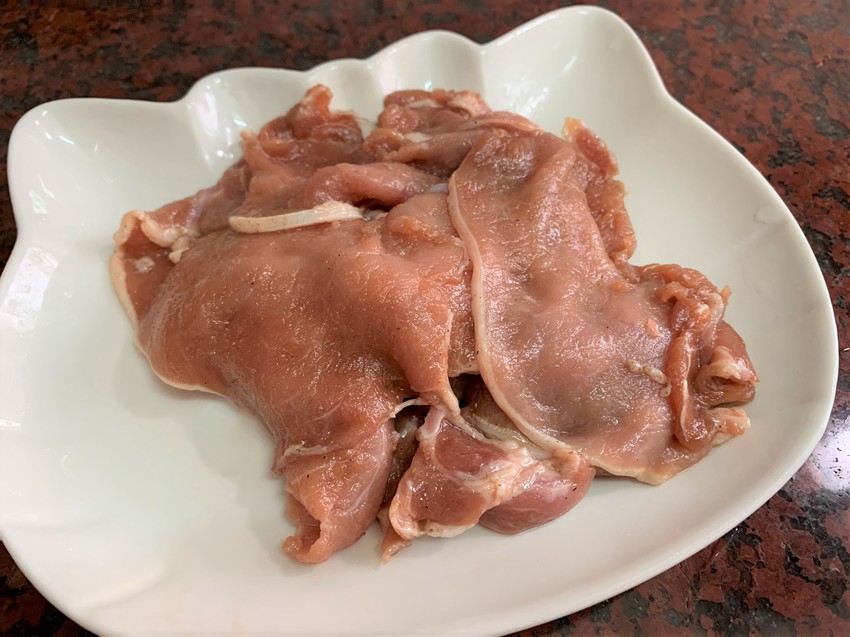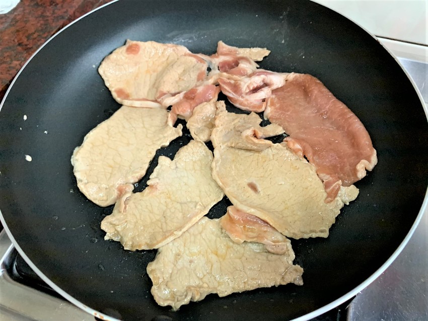 平底鍋煎熟,肉片厚度可以一下就煎熟,不要煎太老,