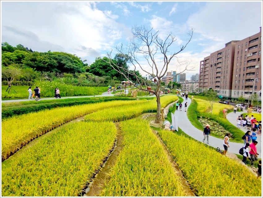 ▼滿滿金黃稻浪穿梭在都市叢林中,感覺別有一番風味,也吸引不少朋友漫步其中!